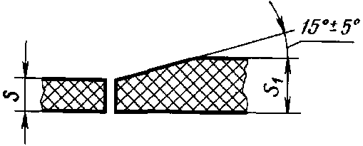 , должен быть сделан скос с одной или двух сторон до толщины более тонкой детали S, как указано на черт. 1,