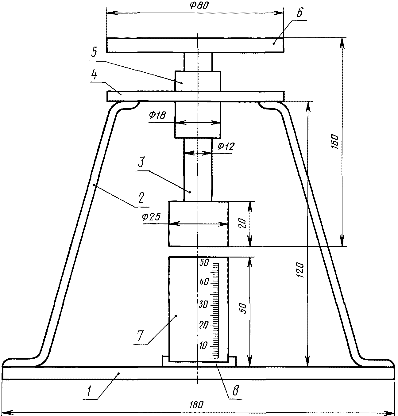 1 - основание прибора; 2 - стойка; 3 - плунжер со штоком;