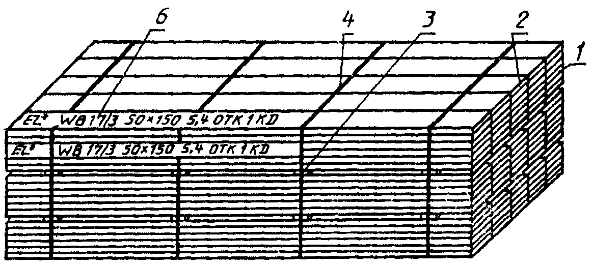 1 - пакеты; 2 - прокладка; 3 - обвязка; 4 - маркировка;