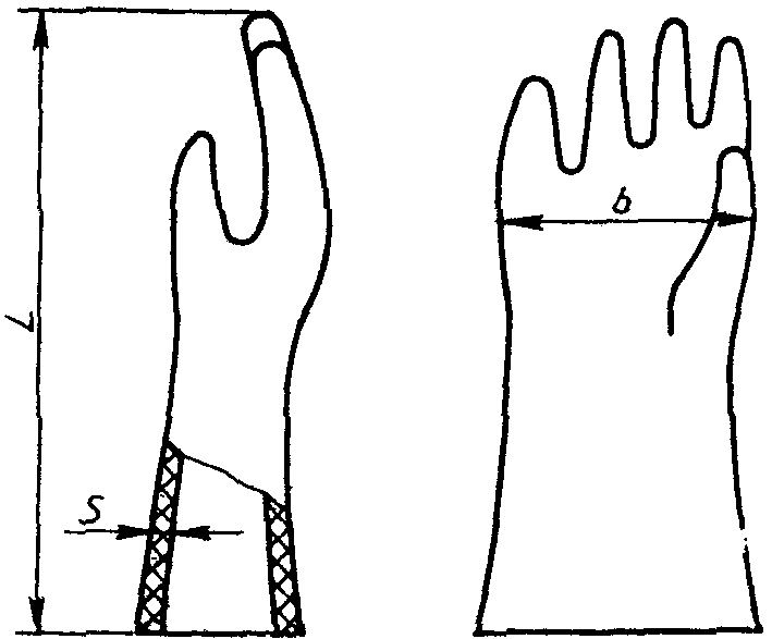 1.2.3. Длина перчаток L должна быть не менее 300 мм. Остальные размеры должны соответствовать указанным на чертеже и в
