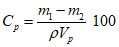Объемную долю открытых пор, насыщенных маслом, в процентах (Cp) вычисляют с округлением до 0,1% по формуле