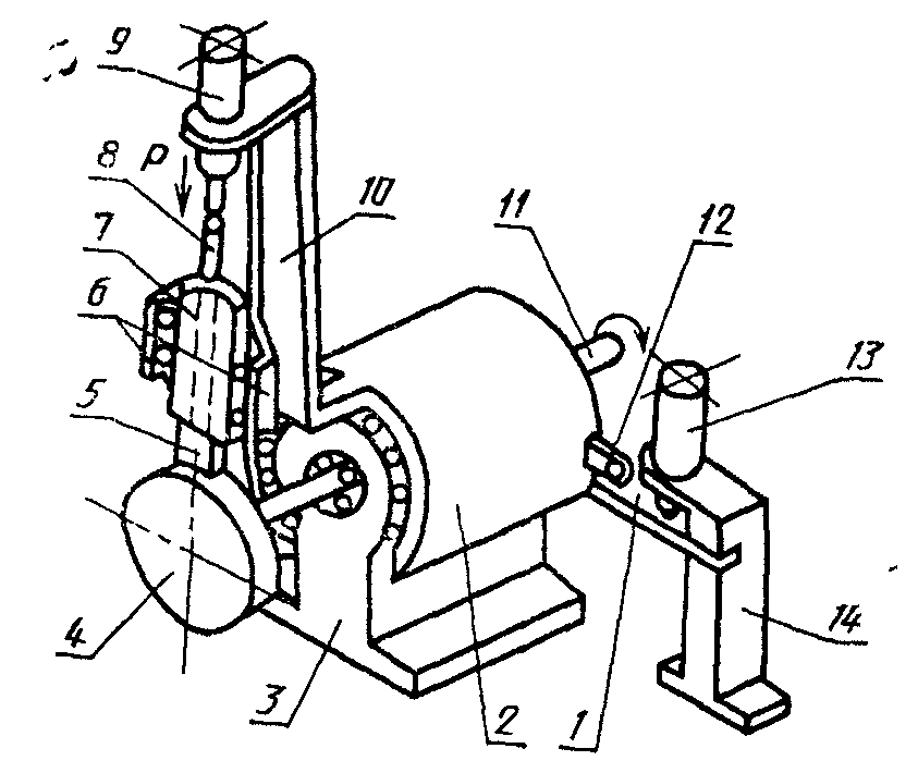 Износ образца и контробразца определяют с помощью датчика линейных перемещений 9. Назначение стержня 8 заключается в снижении влияния деформации и теплового расширения суппорта на результаты измерения износа.