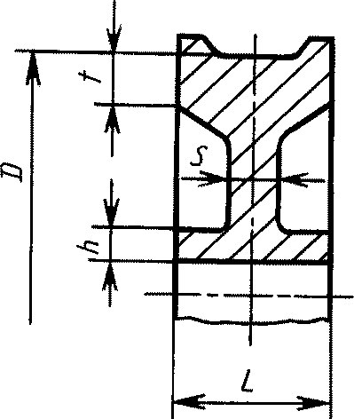 Пример условного обозначения кранового двухребордного колеса диаметром D = 400 мм и шириной поверхности катания B = 100 мм:
