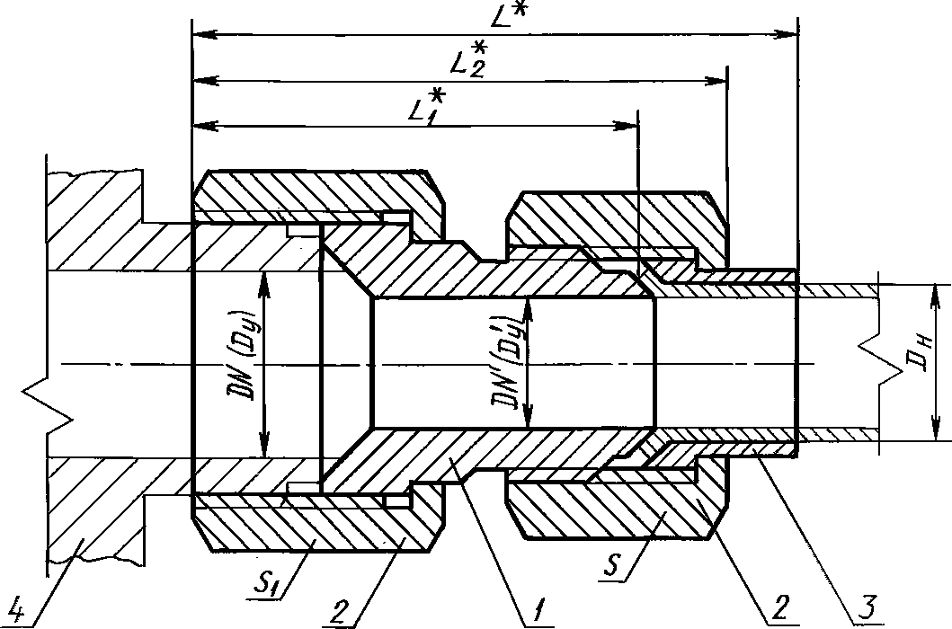 1. Конструкция и основные размеры соединений трубопроводов должны соответствовать указанным на чертеже и в