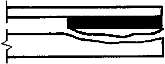 При расслаивании усилие действует перпендикулярно к продольной оси плоскости клеевого шва.