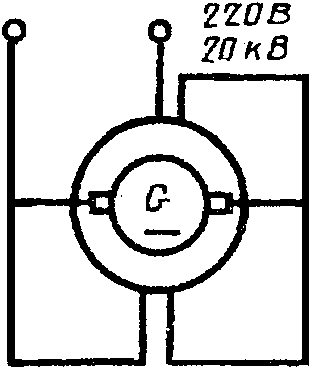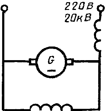 38. Генератор постоянного тока с двумя выводами, со смешанным возбуждением, с указанием зажимов, щеток и числовых данных, например, 220 В, 20 кВ | ![]() | ![]() |
