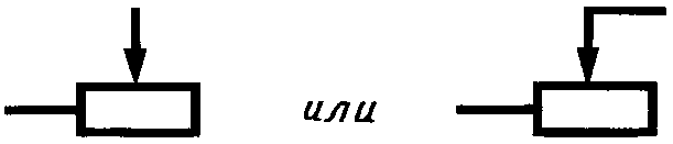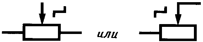 Примечания: 1. Стрелка обозначает подвижный контакт. 2. Неиспользуемый вывод допускается не изображать. 3. Для переменного резистора в реостатном включении допускается использовать следующие обозначения: | ![]() |