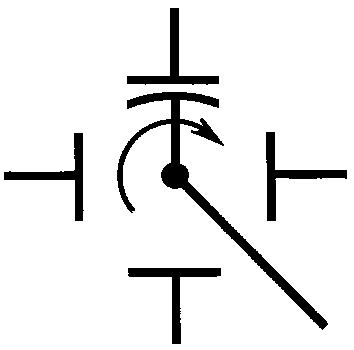 11а. Конденсатор переменной емкости двухстаторный (в каждом положении подвижного электрода C = C) | ![]() |