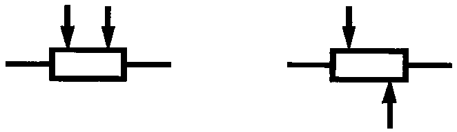 6. Резистор переменный с несколькими подвижными контактами, например, с двумя: | |