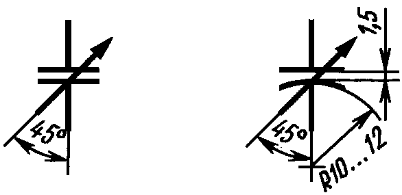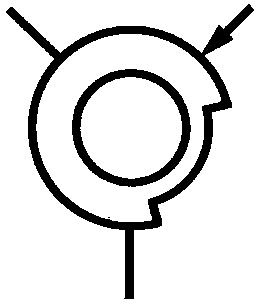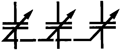 Примечание к пп. 8 - 11а. Если необходимо указать подвижную обкладку (ротор), то ее следует изображать в виде дуги, например | |
