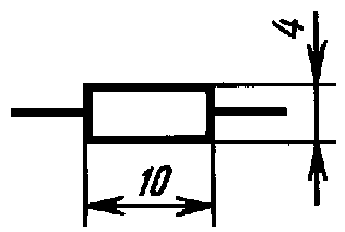 Примечание. Если необходимо указать величину номинальной мощности рассеяния резисторов, то для диапазона от 0,05 до 5 В допускается использовать следующие обозначения резисторов, номинальная мощность рассеяния которых равна: | ![]() |