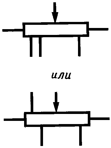 Примечание. Если резистор имеет более двух дополнительных отводов, то допускается длинную сторону обозначения увеличивать, например, резистор с шестью дополнительными отводами. | ![]() |