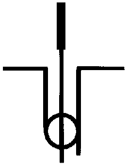 35. Антенна диэлектрическая (например, конусная) Примечание. Обозначение должно упрощенно воспроизводить внешнюю форму диэлектрического стержня | ![]() |