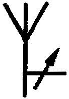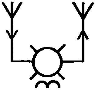 б) антенна приемо-передающая с горизонтальной линейной поляризацией Примечание. При вертикальной поляризации стрелка должна быть параллельна средней линии обозначения антенны, а при горизонтальной поляризации - перпендикулярна ей | ![]() |