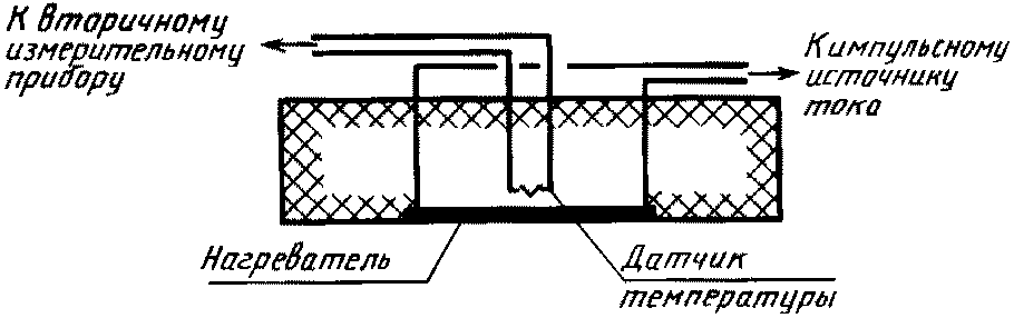 - коэффициенты, определяемые при градуировке и зависящие от мощности теплового импульса, чувствительности датчика температуры, размеров нагревателя, теплофизических свойств тела первичного преобразователя;