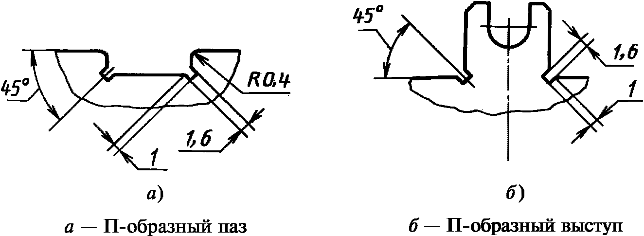 1.3.6. Форма и размеры канавок для выхода шлифовального круга П-образных пазов и выступов указаны на чертеже.