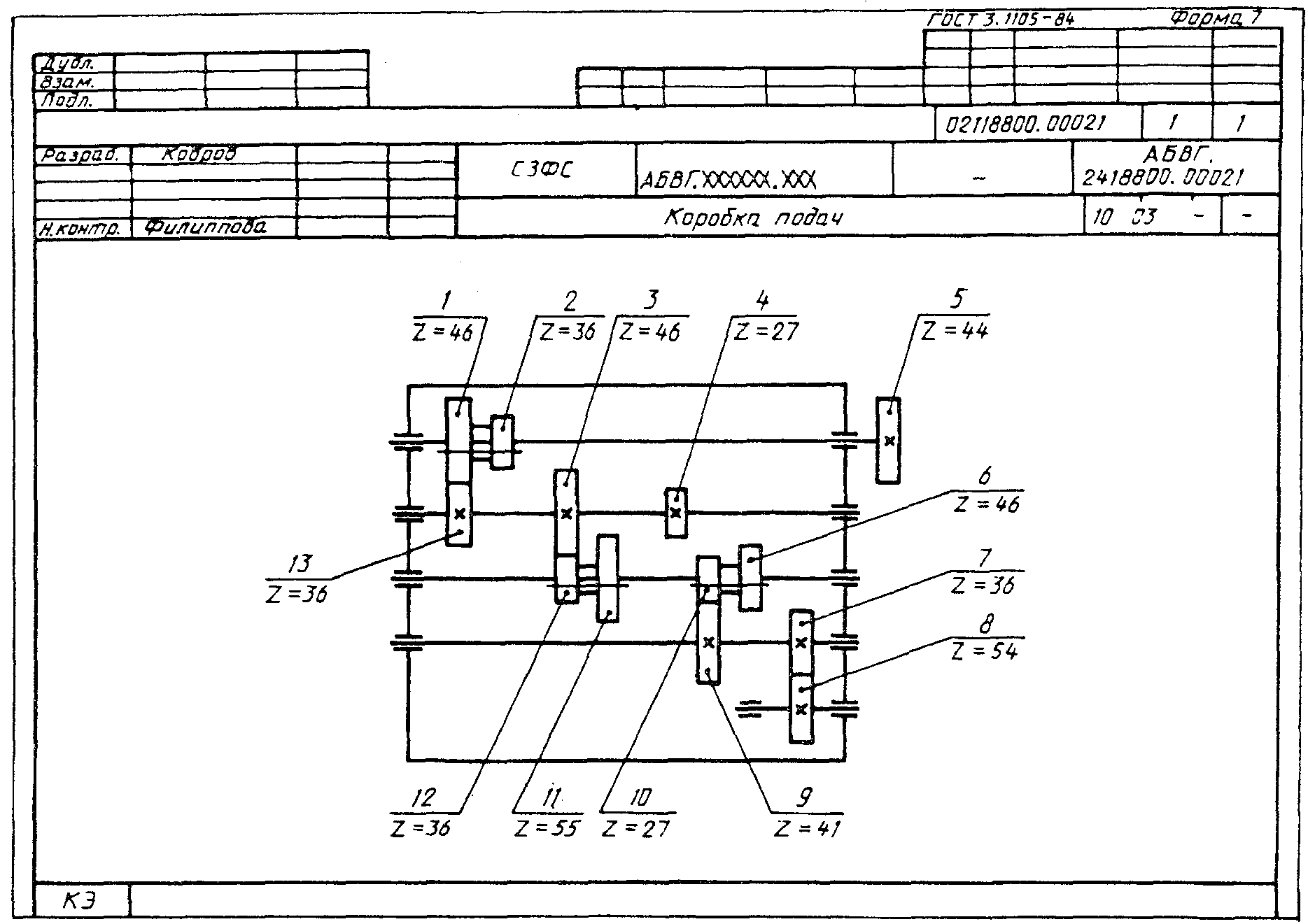 Пример кинематической схемы коробки подач для фрезерного станка на КЭ приведен в