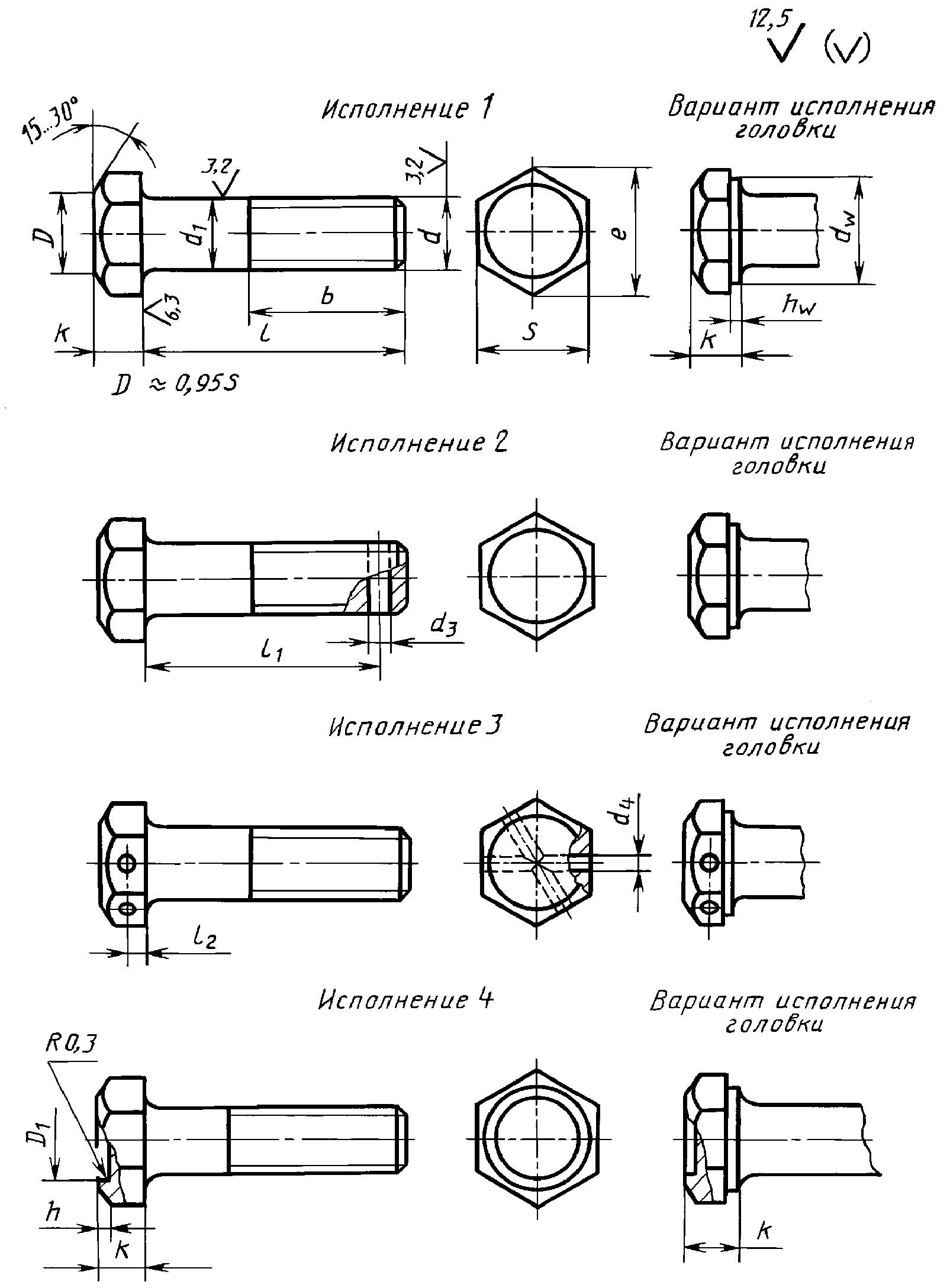 Диаметр отверстия в головке d4 H15 | - | 1,0 | 1,2 | 2,0 | 2,5 | 3,2 | 4,0 | 5,0 | |||||||||||||||