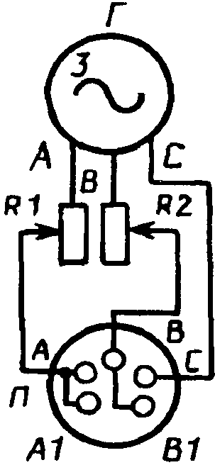 A, B, C, A1, B1 - зажимы синхроноскопа;