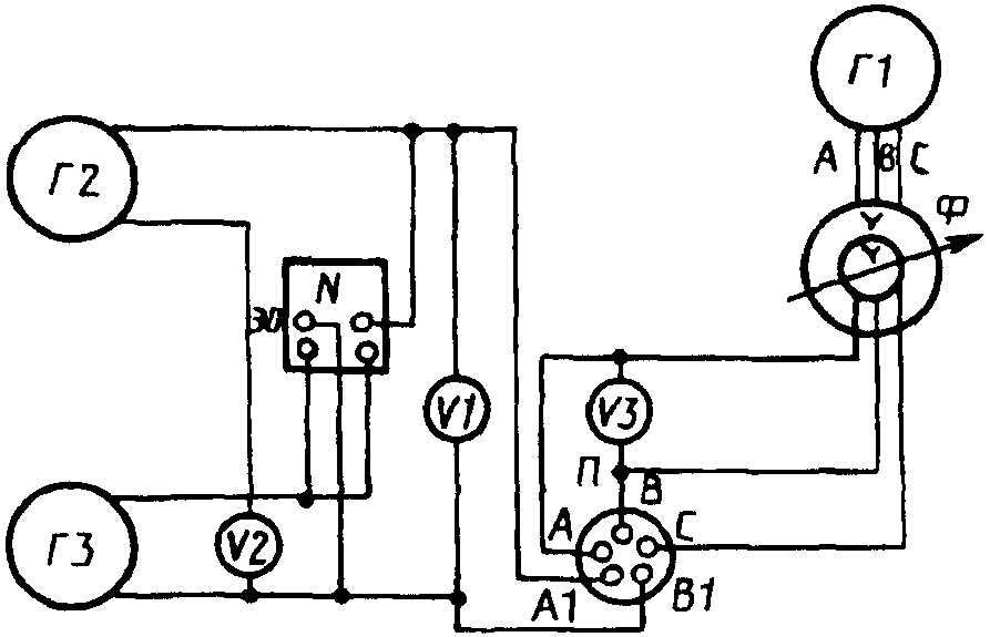 Г1 - трехфазный генератор; Г2, Г3 - однофазные генераторы;