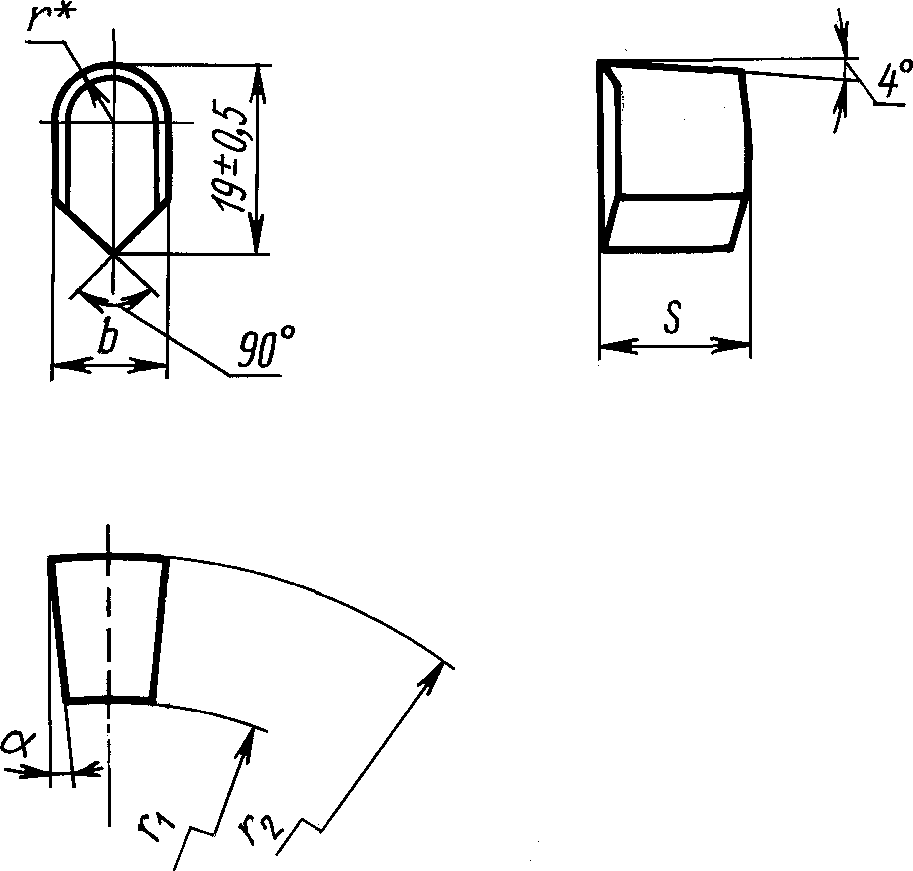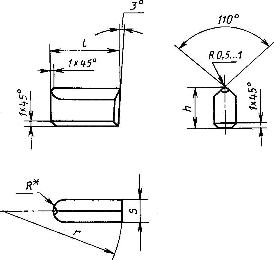 Номер изделия | l (пред. откл. +/- 0,5) | h (пред. откл. -0,8) | s (пред. откл. +0,5) | R <*> | r (пред. откл. +/- 1,0) |