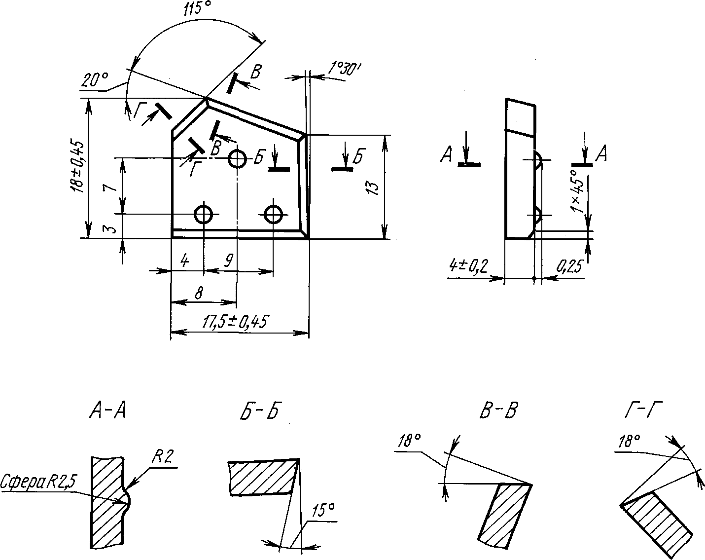 Г24а-02 | 16 | +/- 0,40 | 13 | +/- 0,35 | 4 | +/- 0,20 | 4,5 | 3 | 9,0 | 6 | 10° | 3° |