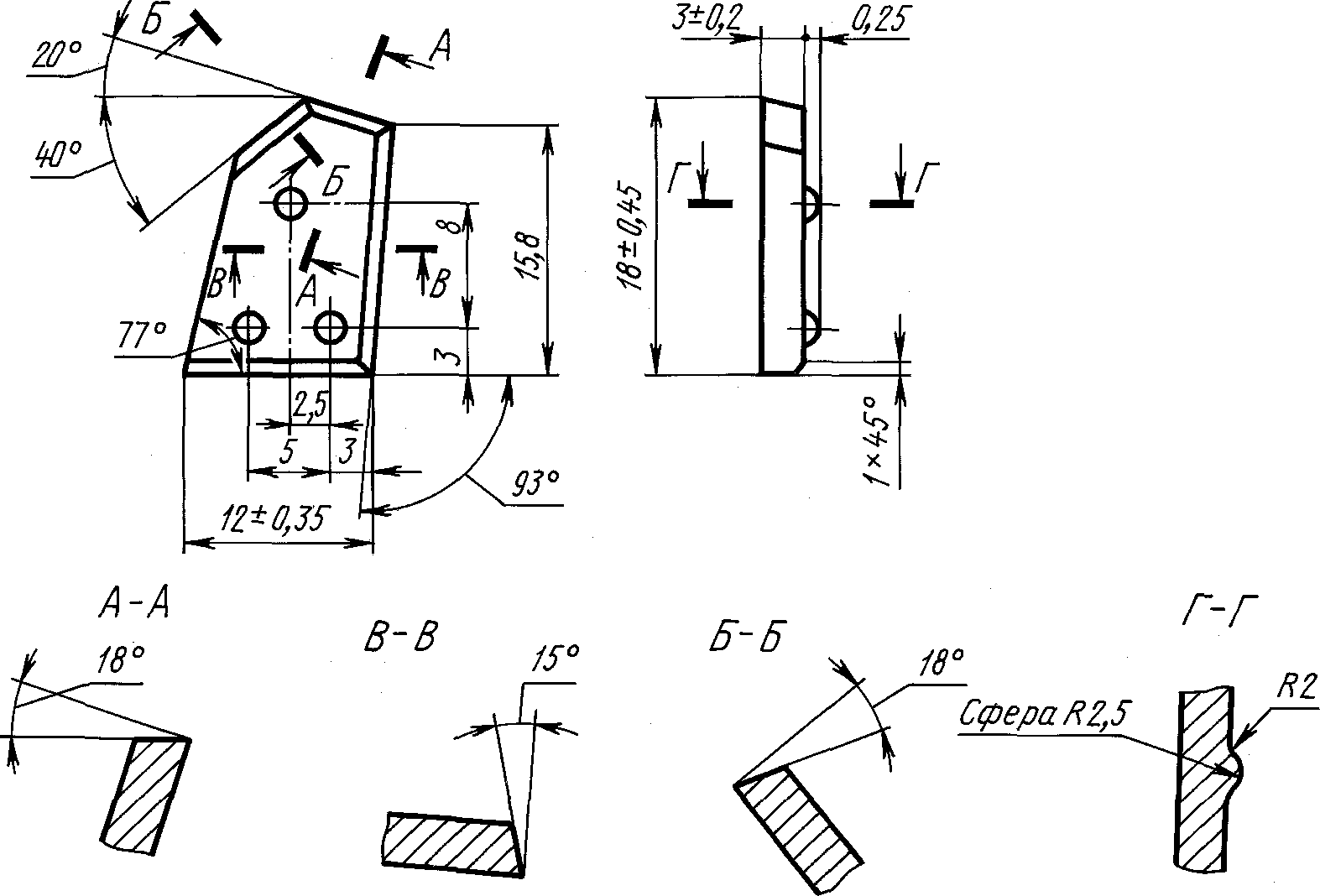 Г2401 | 15 | +/- 0,4 | 12 | +/- 0,35 | 4,0 | +/- 0,20 | 4,5 | 2,5 | 8,0 | 6,5 | 10° | 3° |