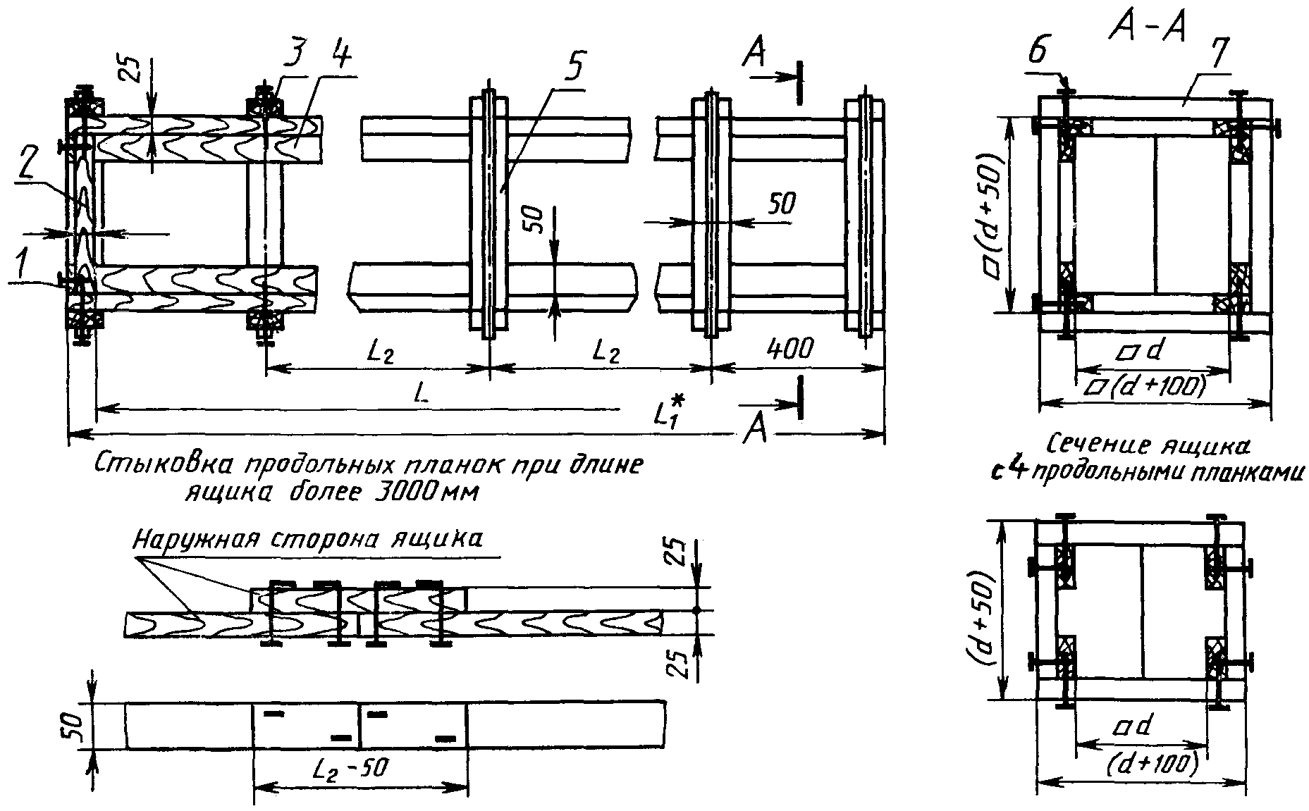 4 При отсутствии длинномерного материала при длине ящика более 3000 мм разрешается стыковка продольных брусков, досок и планок.