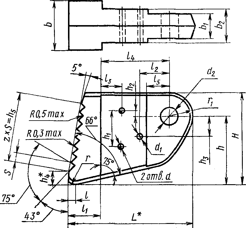 Диаметры трубы, зажимаемой ключом, D | b | b1 | b2 | L | l | l1 | l2 | l3 | l4 | l5 | H | h | h1 | h2 | h3 | h4 | h5 | r | r1 | S | Число зубцов z, не менее | d | d1 | d2 |