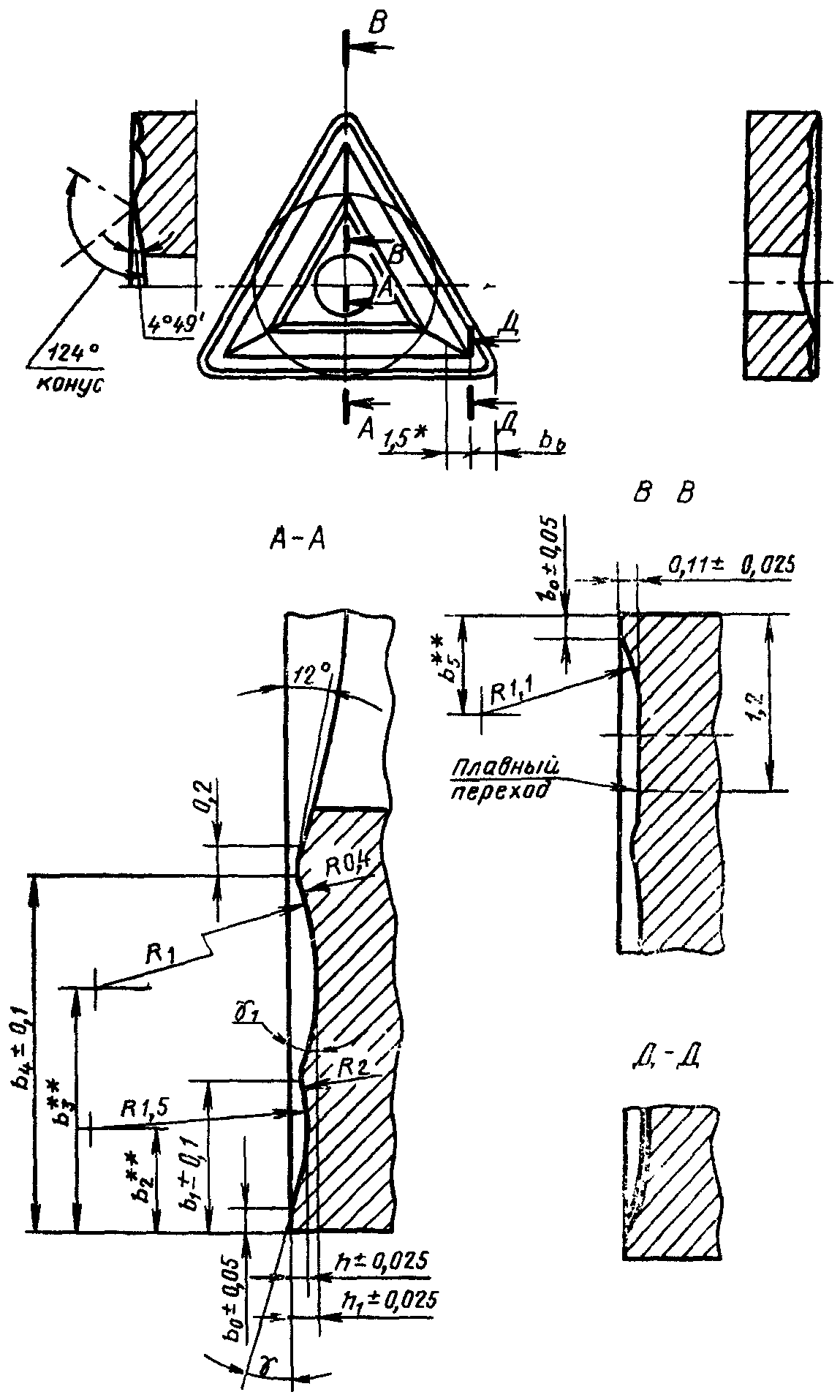 "ГОСТ 19046-80. Пластины режущие сменные многогранные твердосплавные трехгранной формы с отверстием и стружколомающими канавками на одной стороне. Конструкция и размеры"