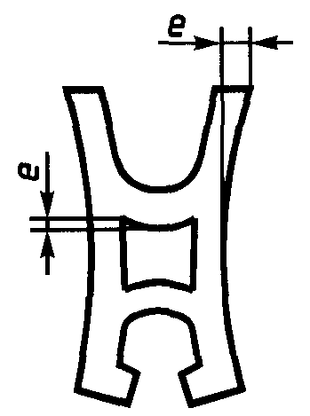не более 0,5 мм - при толщине полки и стенки до 3 мм включ.;