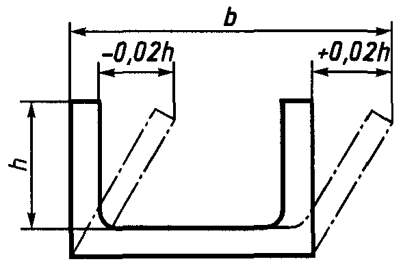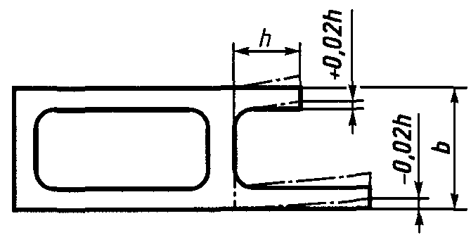 табл. 1) и предельного отклонения наклона полок профиля, равного +/- 0,03h (высота полки).
