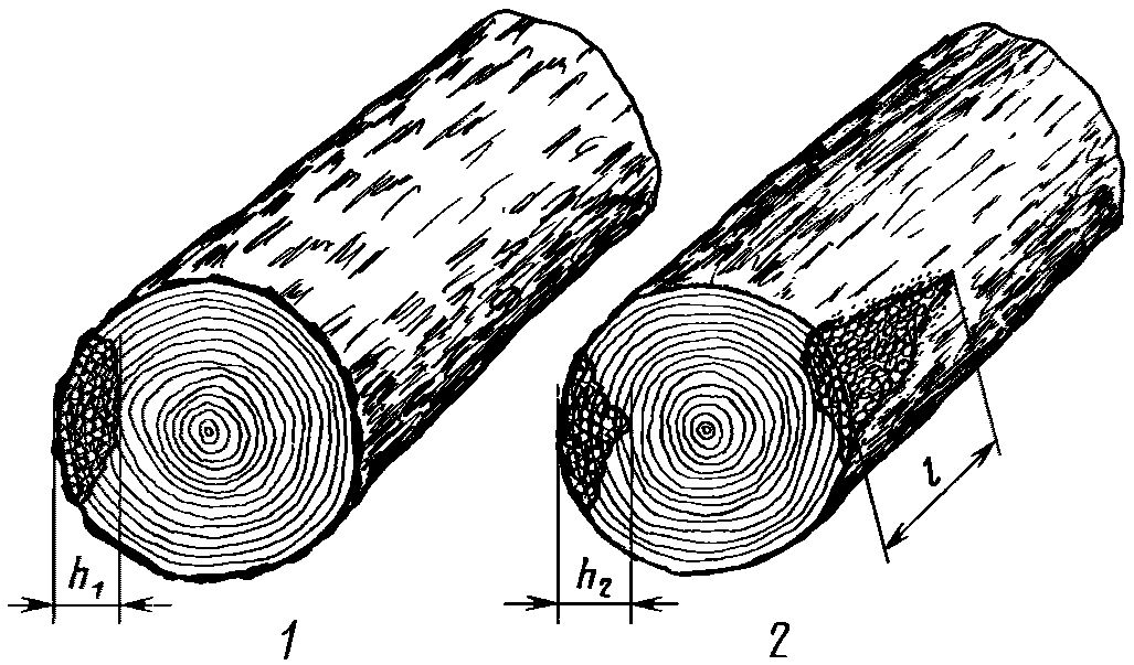1 - на неокоренных бревнах; 2 - на окоренных бревнах