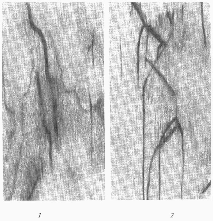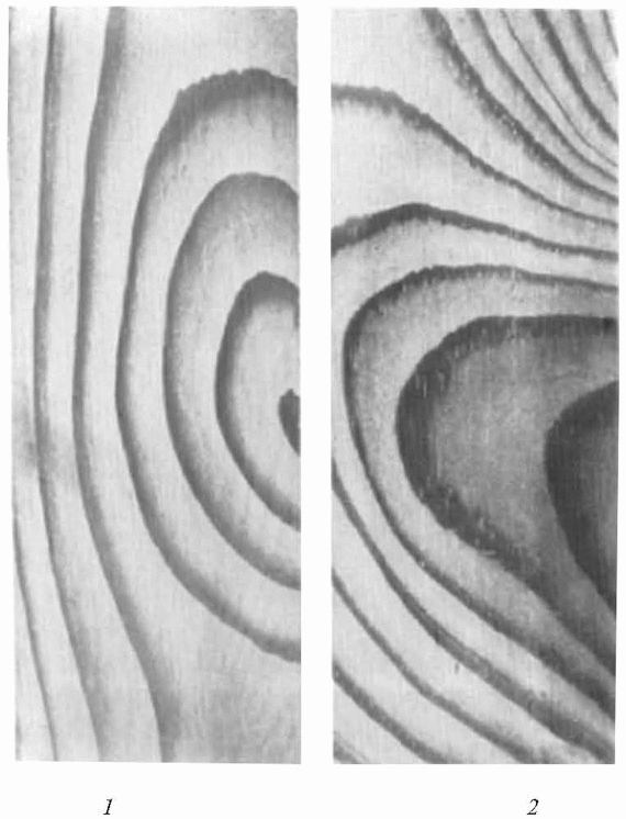 1 - радиальный разрез; 2 - тангентальный разрез;