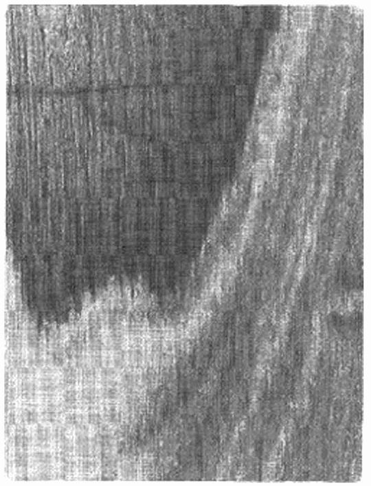 1 - тангентальный наклон волокон в пилопродукции и шпоне