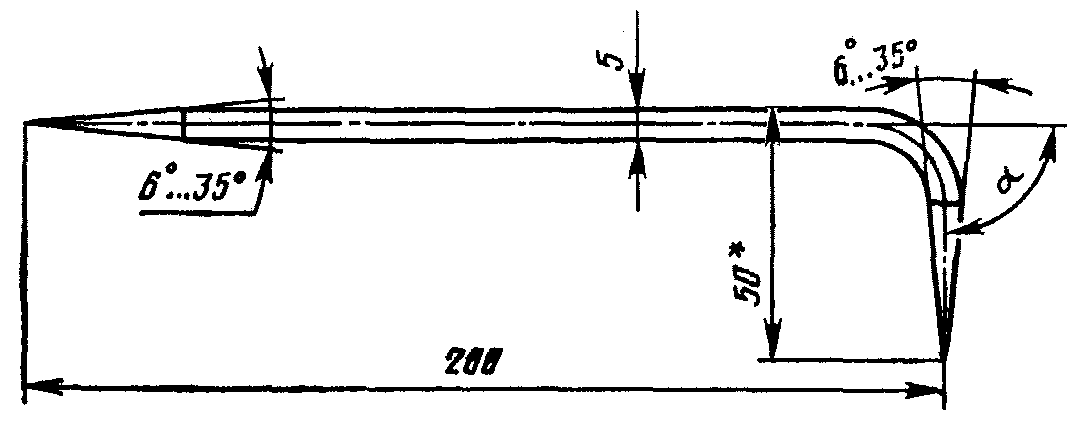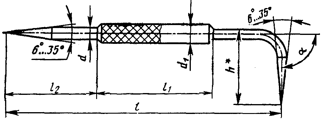 Обозначение чертилки │Применяе-│ d, │ d │ l │ l │ l │h │альфа