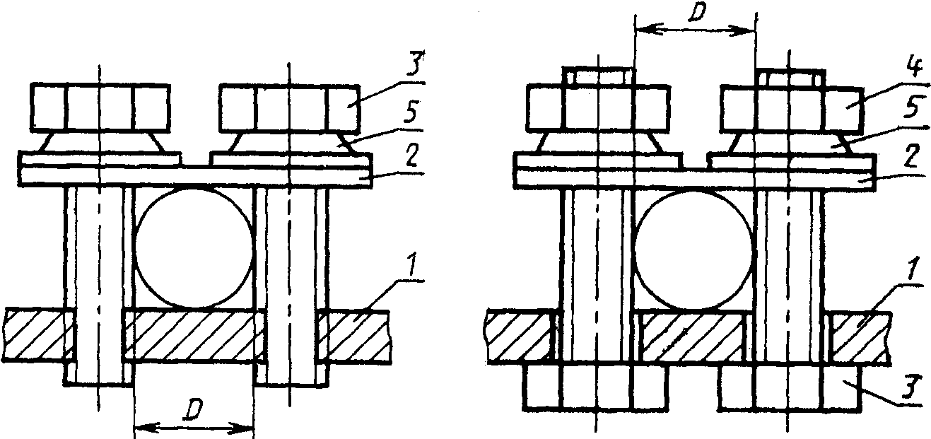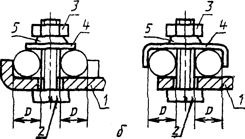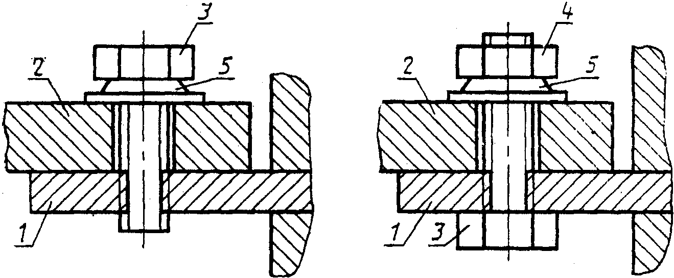 4 - гайка; 5 - устройство, предохраняющее крепежные детали