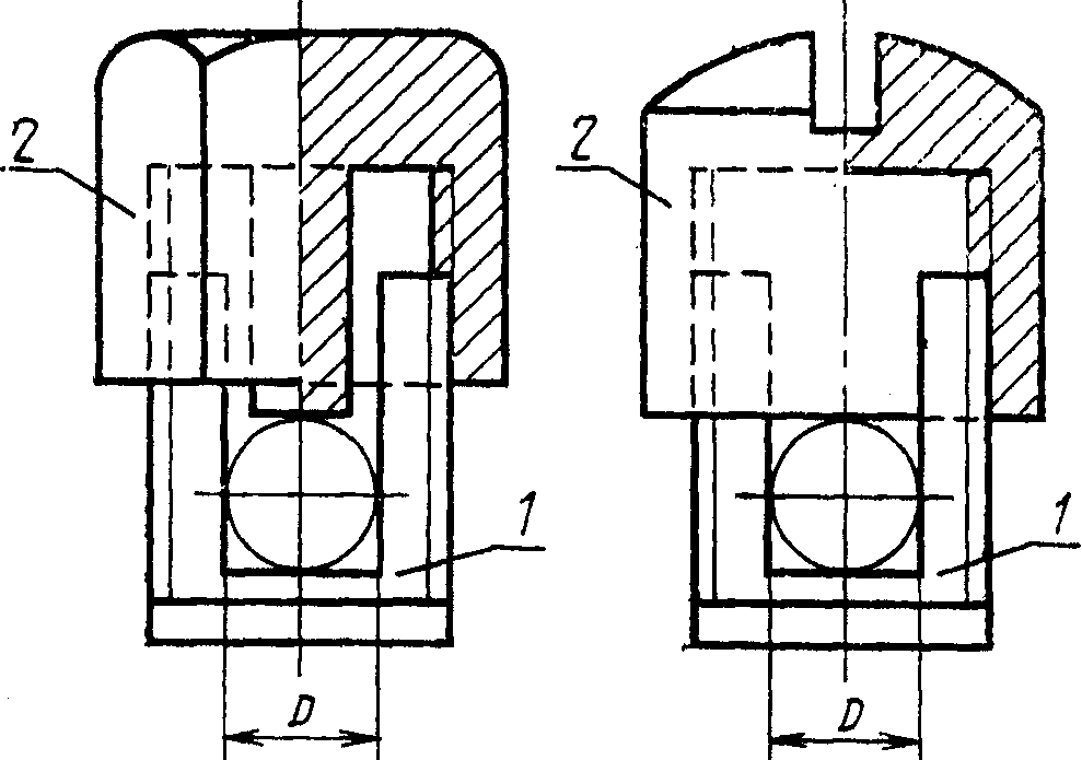 1 - гнездовой вывод; 2 - колпачковая гайка