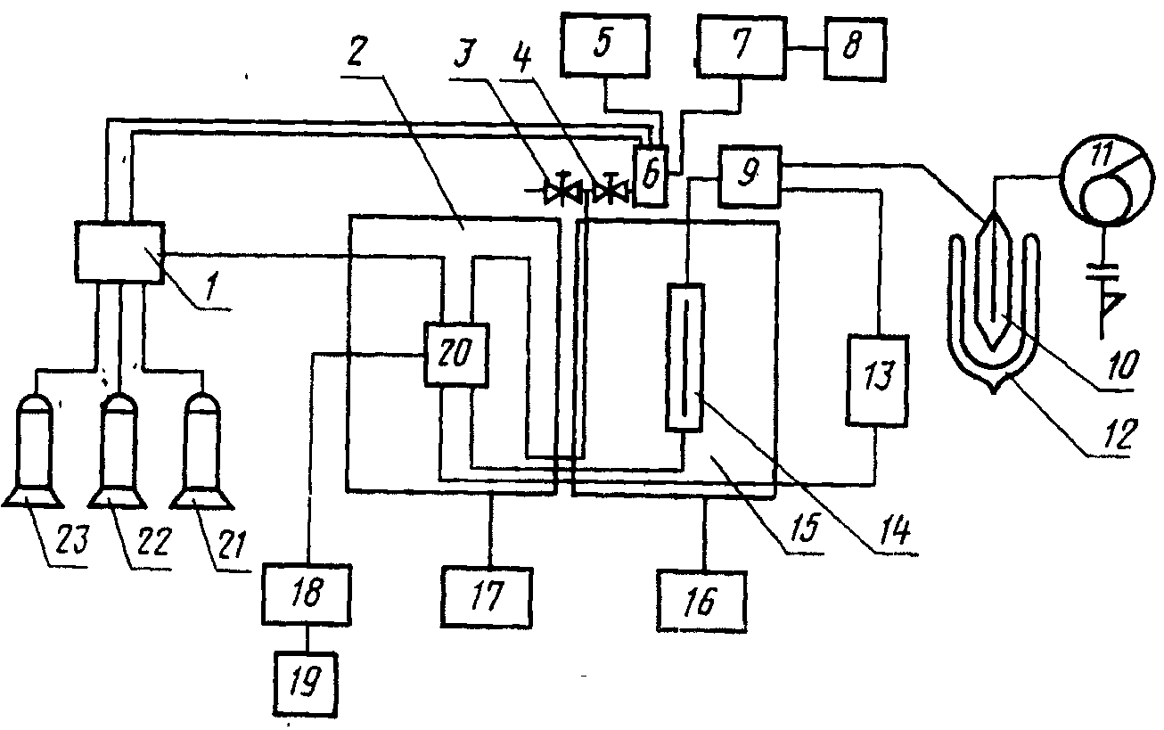 20 - детектор по теплопроводности; 21 - аргоновый баллон