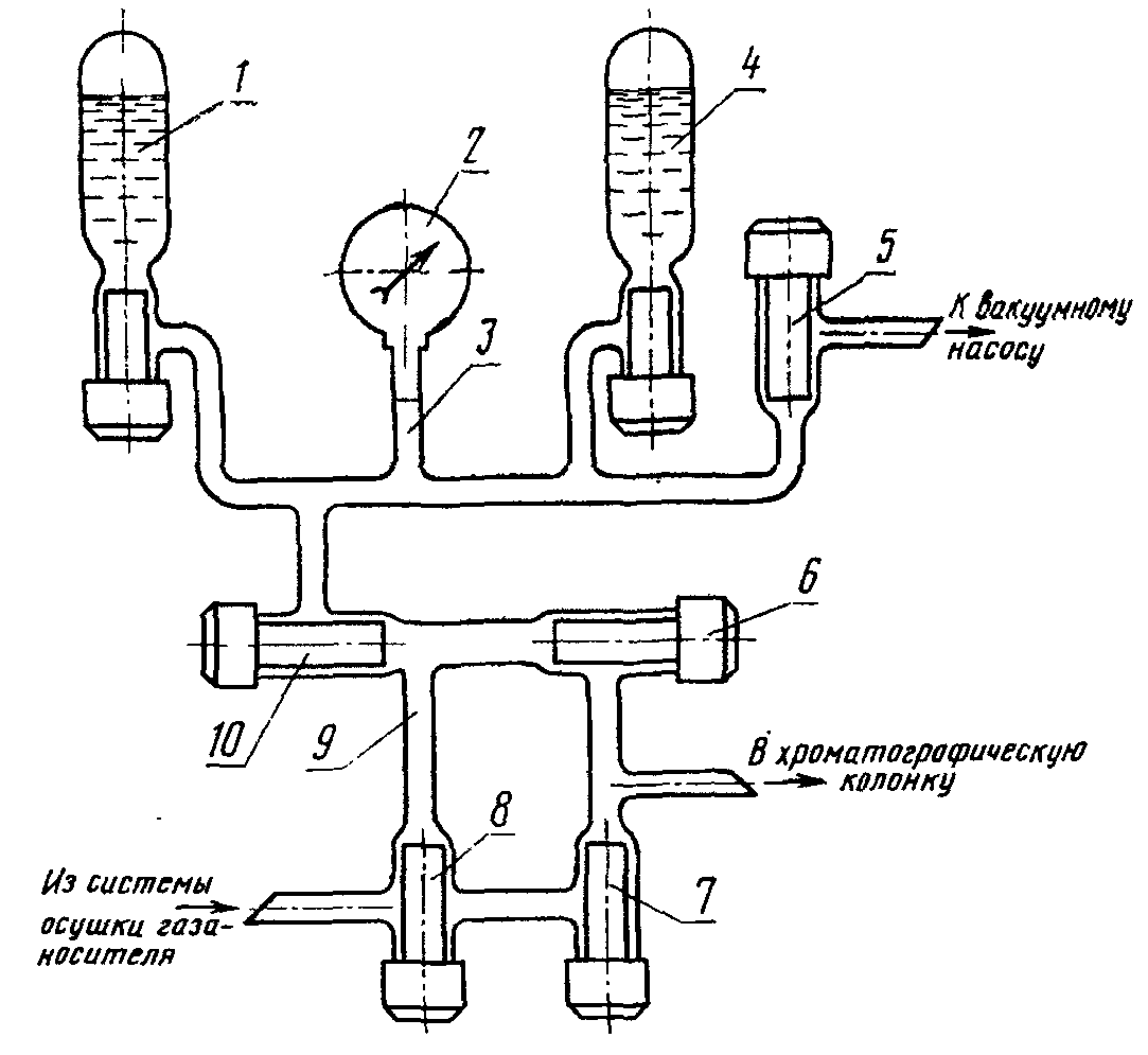 5, 6, 7, 8, 10 - краны из стекла и фторопласта;