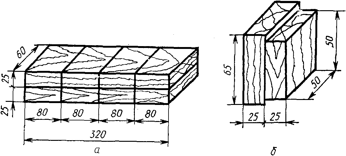 Для каждой партии испытуемого клея склеивают попарно четыре бруска.