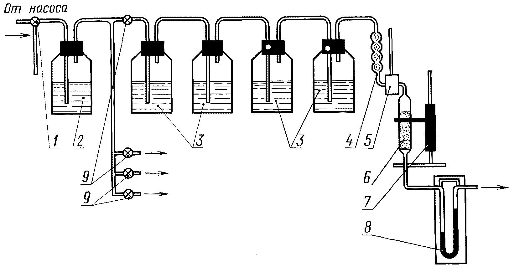 3 - склянка с кислотой; 4 - брызгоуловитель;