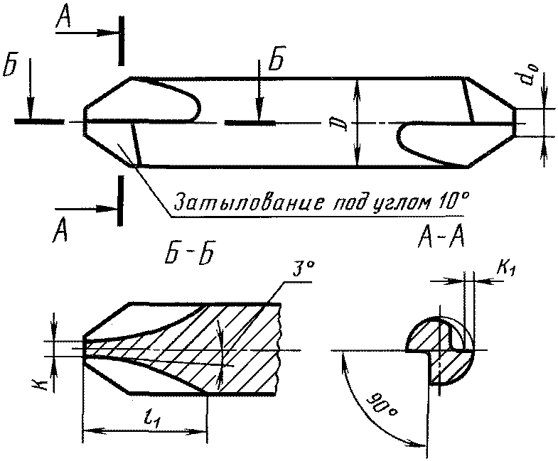3 - зенковки центровочные для центровых отверстий с углом при вершине 60° с предохранительным конусом 120°;