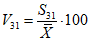 в процентах внутри единиц второй стадии отбора по формуле