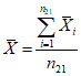 общее выборочное среднее арифметическое (X) по формуле