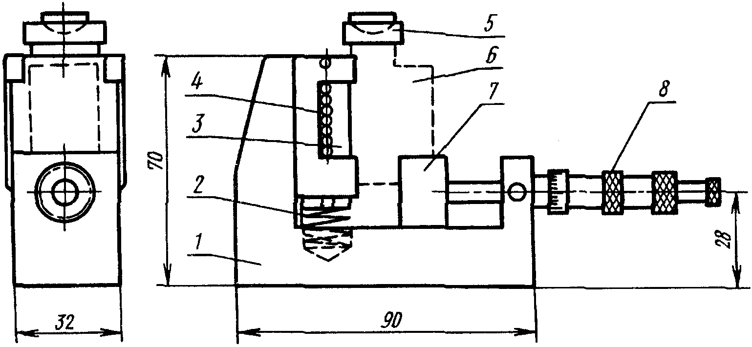 1 - корпус; 2 - пружина; 3 - подвижная планка;