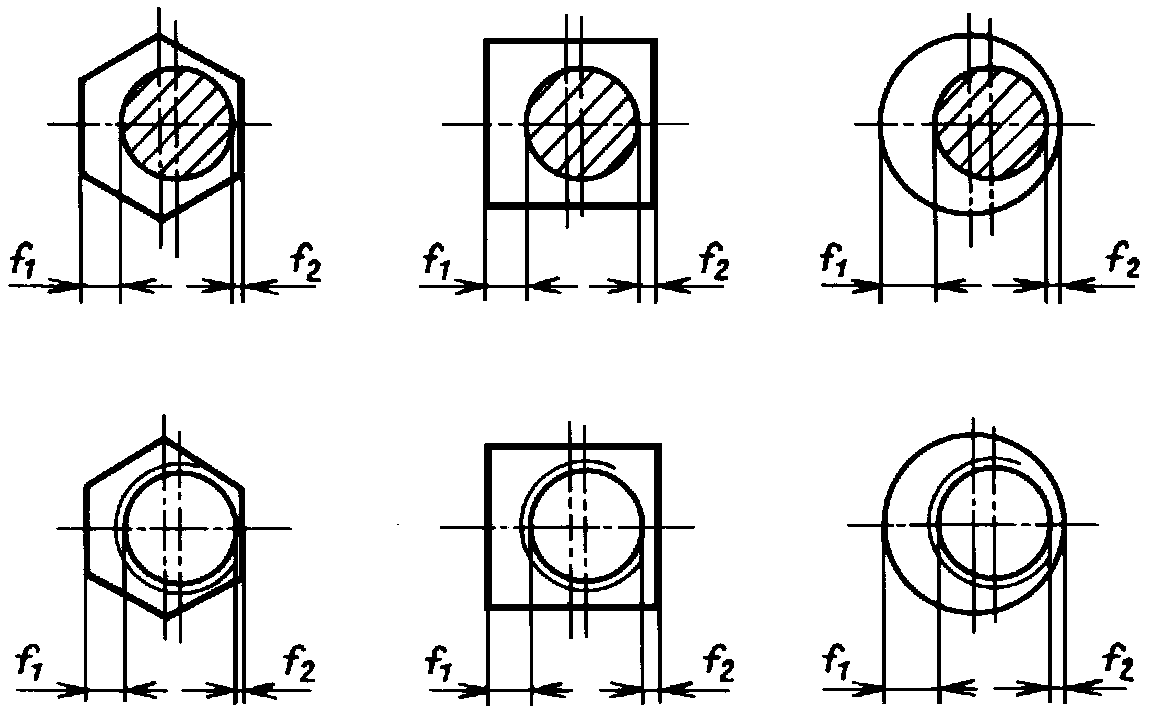 шестигранника и квадрата относительно оси отверстия в гайке и отклонение от соосности