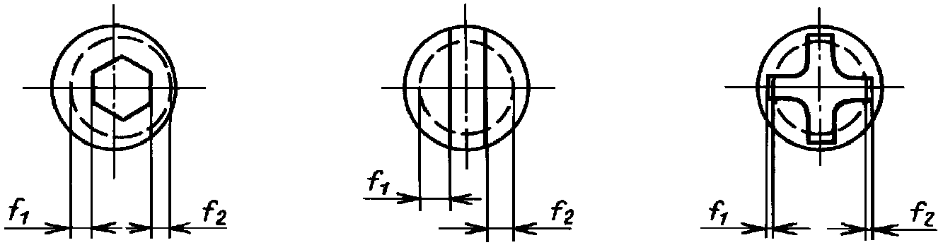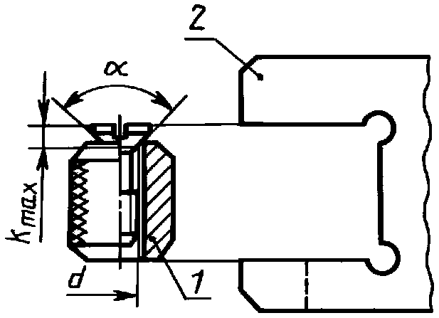 шлица или шестигранного углубления (внутреннего шестигранника) относительно оси стержня в соответствии с черт. 3 должно определяться по формуле