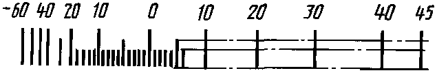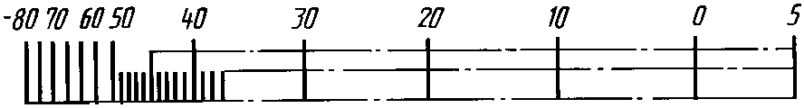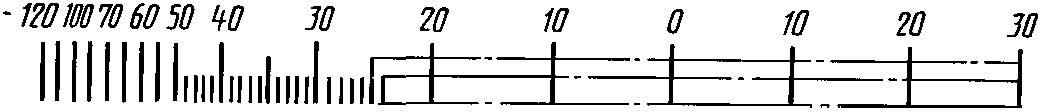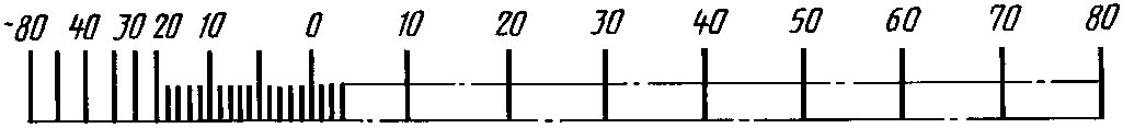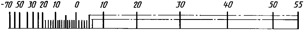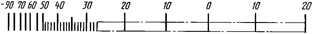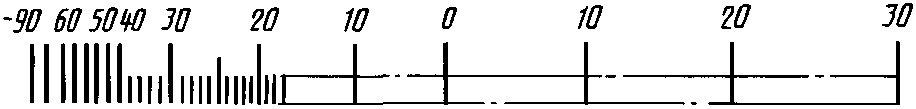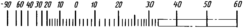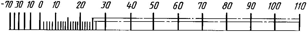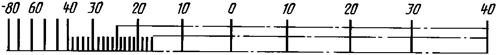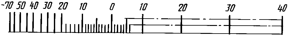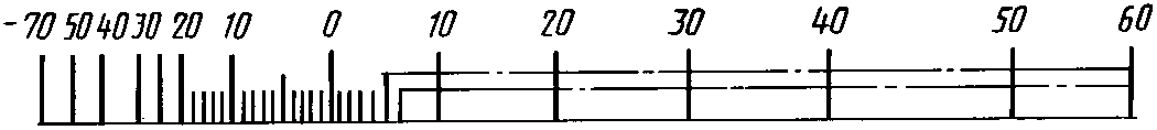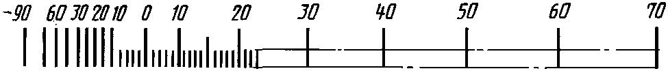 Диапазон показаний | Пример разделения температурной шкалы на интервалы и нанесение числовых отметок для хладона R12 |