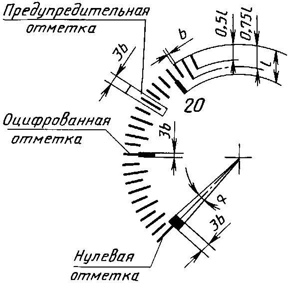 Ширина отметок шкалы прибора класса точности 0,4 <*> и 0,6 должна быть одинаковой.